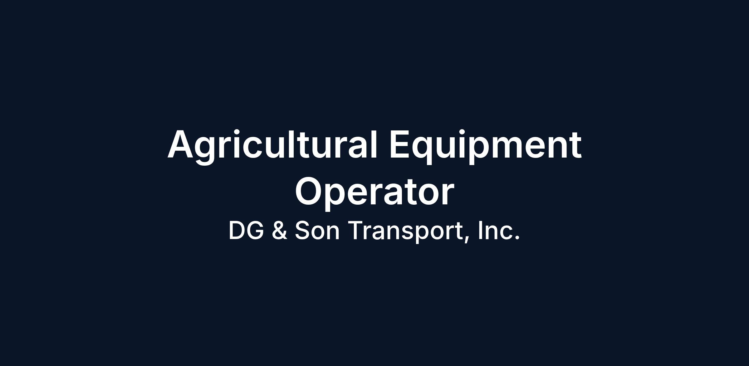 Agricultural Equipment Operator