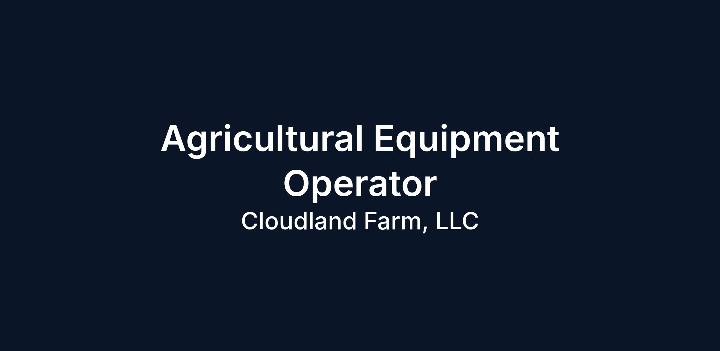 Agricultural Equipment Operator