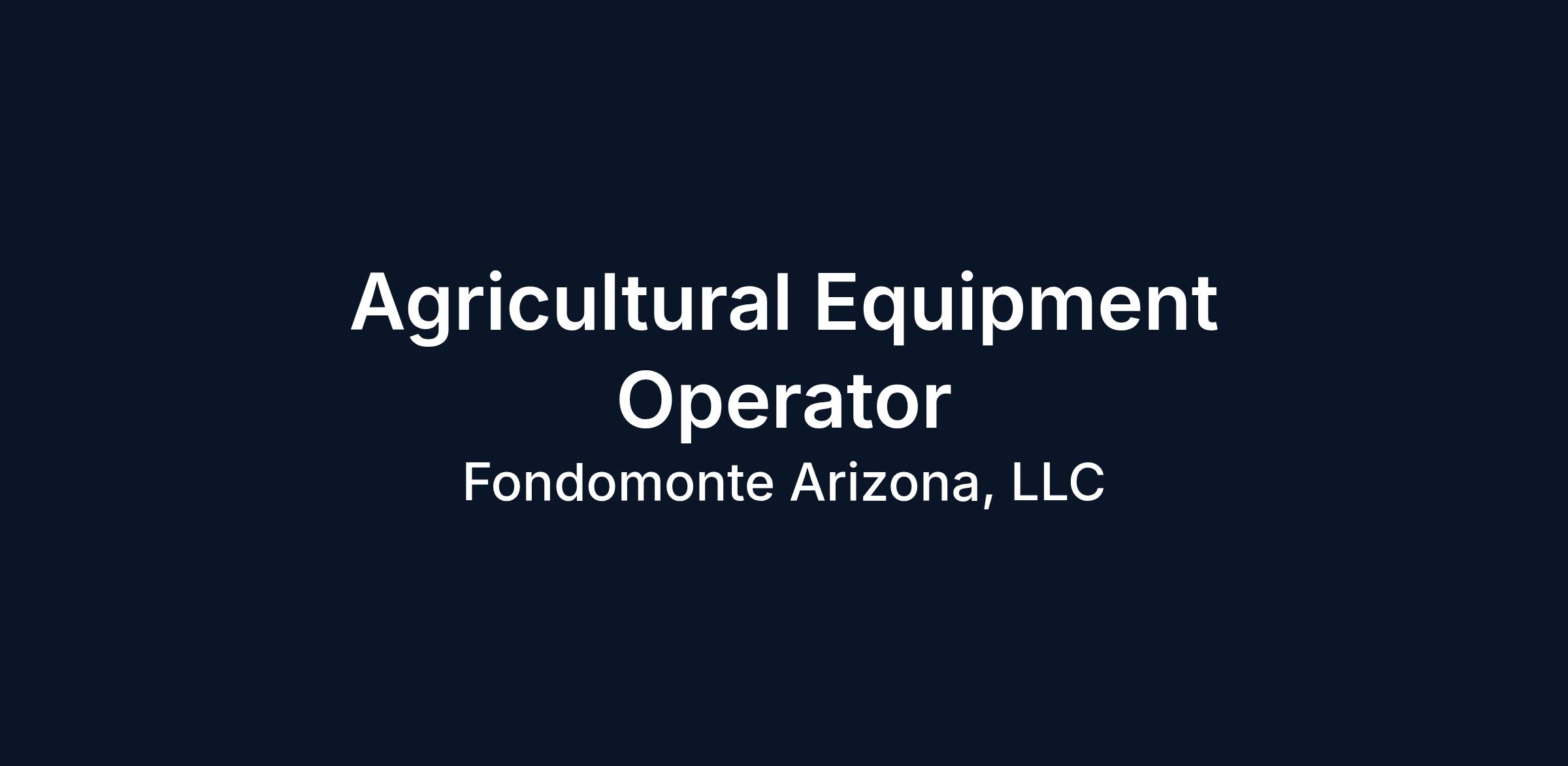 Agricultural Equipment Operator