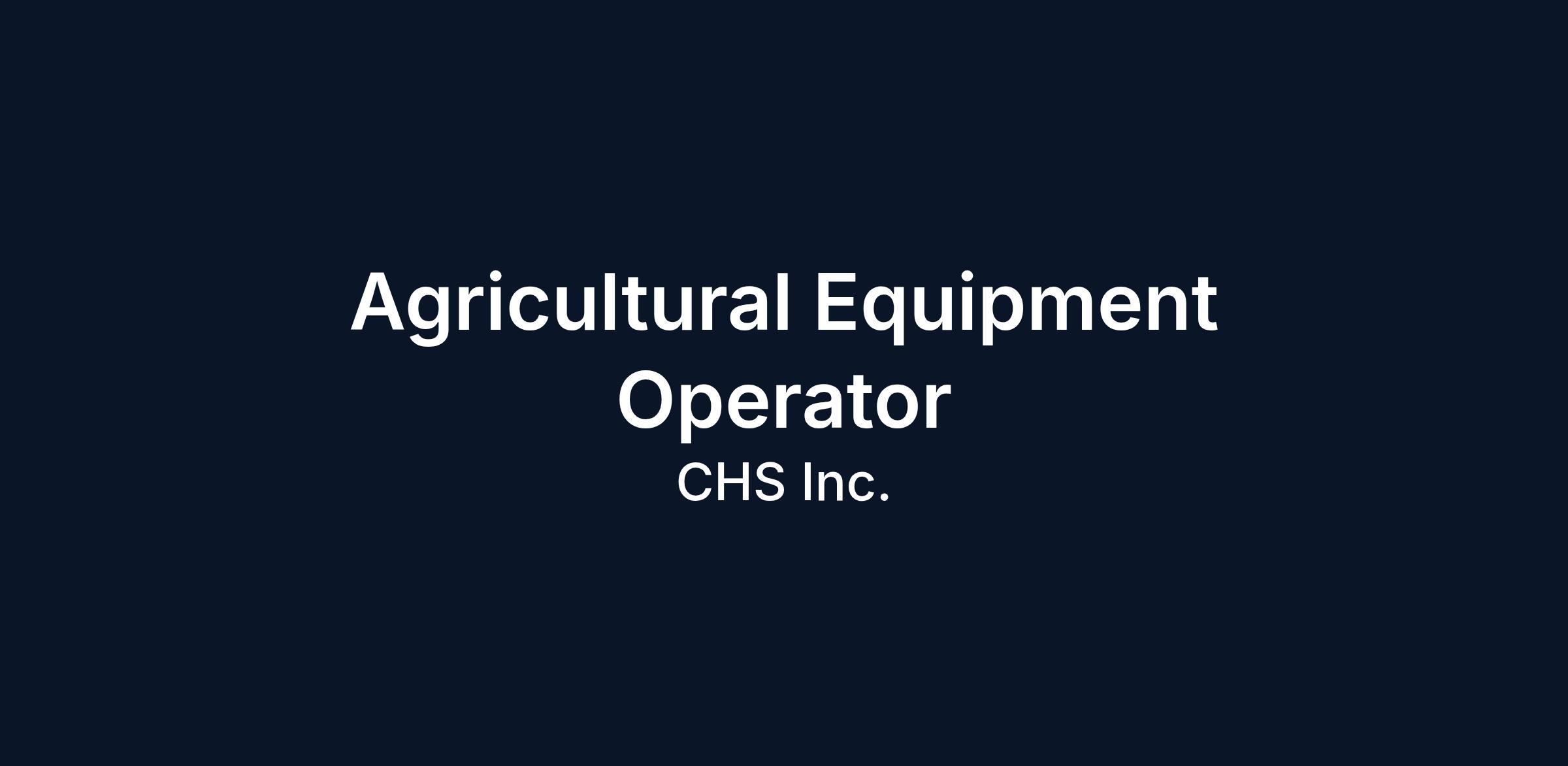 Agricultural Equipment Operator
