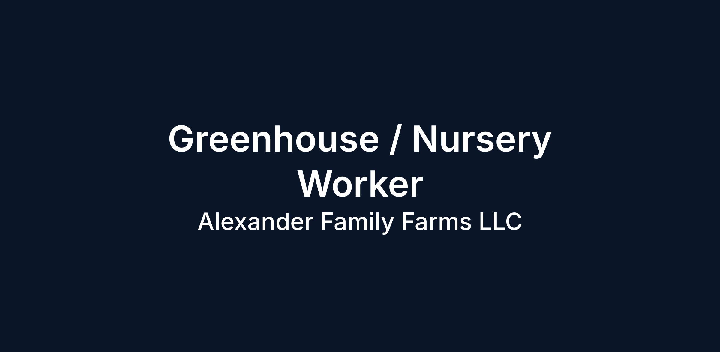 Greenhouse / Nursery Worker