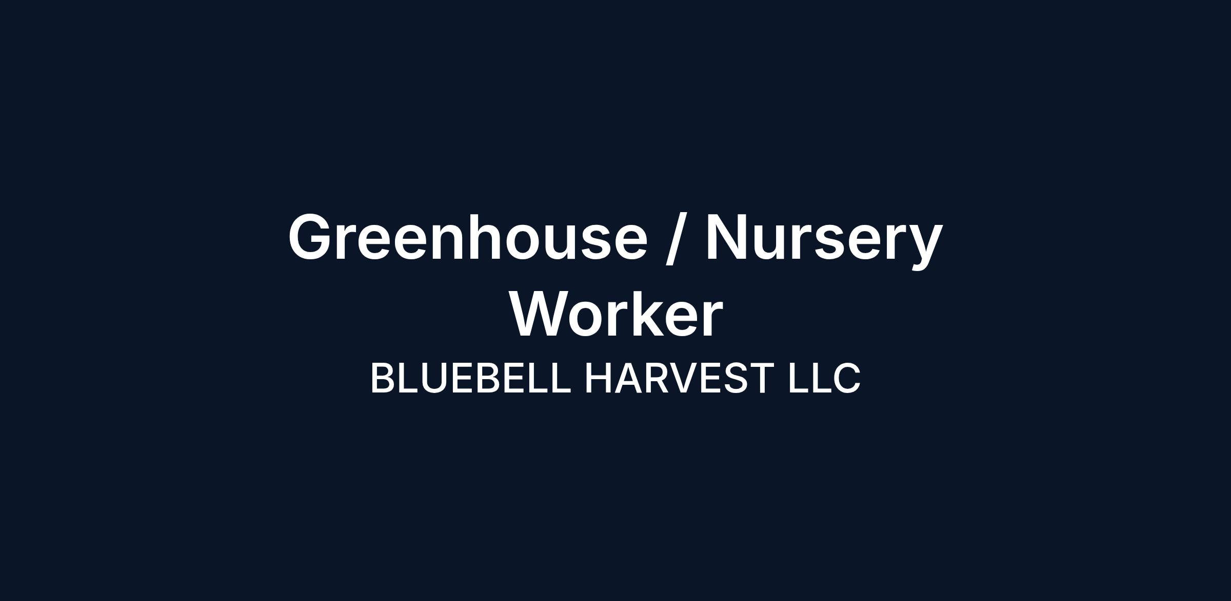 Greenhouse / Nursery Worker